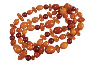 Amber necklace, mixed shapes a.o. BUTTERSCOTCH-OLIVEN a.o., L = approx. 92,0 cm (endless) total76,0 g