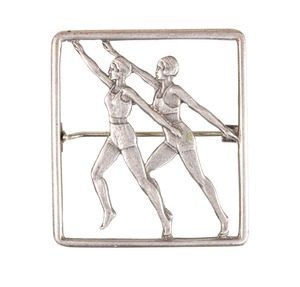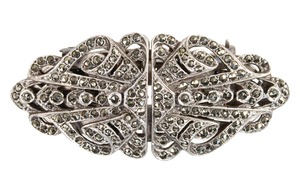 DUETTE als Brosche gearbeitet, ART-DECO 1930er Jahre, SILBER (SILVER P.A), Markasite in aufwändiger Ornamentik gefasst, 2 abnehmbare Kleiderclips, Brosche ca. 48,0 x 21,2 mm