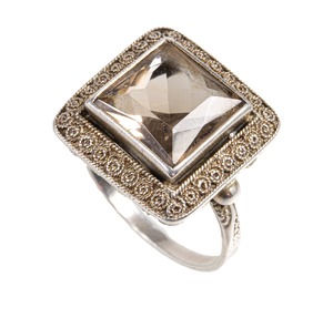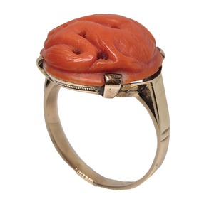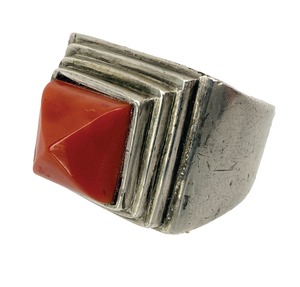 Ring, ART-DECO 1930s/40s, SILVER, pyramid-shaped cut coral, ring head approx. 16.0 x 16.0 mm, RW 54