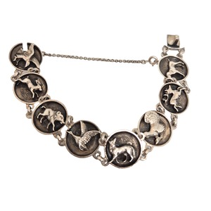 Bracelet, circa 1880/1900, SILVER, 10 heads cut into lava, sculpted, w = 15.0 mm (clasp w = 16.0 mm), integrated box clasp with safety chain, l = approx. 18.5 cm