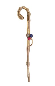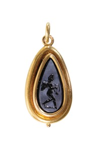 Pendant/medallion, France 1st half 19th century, GG 750/000 (eagle's head with countermark), set with rock crystal/glass on both sides, the frame decorated with a stylized snake, delicate remnants of black enamel, h = 32.3 mm, total 2.8 g