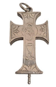 Original MARIA THERESIENTHALER, designed/enameled around 1880, the original brooch was reworked into a pendant, Mary with baby Jesus in colorful enamel D = 41.0 mm