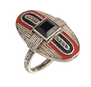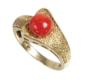 Ring, ART-DECO 1930/40er Jahre, SILBER, pyramidenförmige geschliffene Koralle, Ringkopf ca. 16,0 x 16,0 mm, RW 54