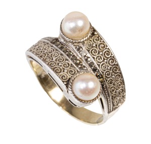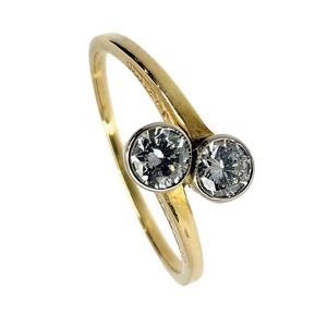 Ring, ART-DECO 1920/30s, GG 585/000 (tested), 2 brilliant-cut diamonds total approx. 0.32 ct tw-vsi (white setting), ring head ornamented on the sides, RW approx. 56.5