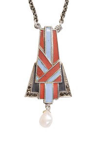 Necklace, THEODOR FAHRNER Pforzheim c. 1928, SILVER 935/000 (without signature), elongated links with black and delicate green enamel on both sides, L = 46.8 cm Literature at Arnoldsche THEODOR FAHRNER SCHMUCK, Mattemaille p. 168 (similar)