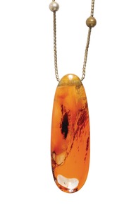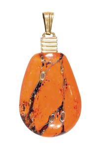 Anhänger, ART-DECO 1930er Jahre, Metall verg., WMF IKORA, orangefarbenes Glas mit dunklen Fäden durchzogen, H = 65,3 mm
