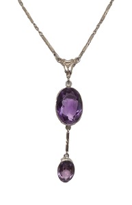 Necklace, 1930s/40s, SILVER 925 or 935/000, 2 suspended amethysts (fac.), front h = 53.0mm, chain with twisted links, l = approx. 43.5 cm