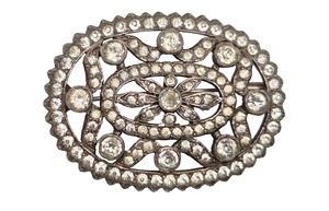 Brooch, ART-DECO 1930s, SILVER, elaborately set colorless rhinestones, brooch approx. 47.0 x 35.2 mm