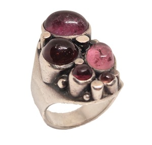 Decorative ring VINTAGE 1970s, SILVER, sig. CB, 5 tourmaline cabochons, ring head approx. 16.0 x 28.2 mm, RW approx. 56