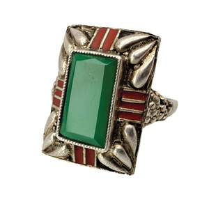 Ring, ART-DECO 1930/40s, rectangular green agate, RW ca.54,5