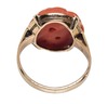 Anhänger 1940er Jahre, GG 585/000, Carneol mit floralem Dekor, kl. Altschliff-Diamant weiß, H = 49,0 mm, total 8,9 g