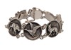 Armband um 1880/1900, SILBER, 10 in Lava geschnittene Köpfe, plastisch ausgearbeitet, B = 15,0 mm (Schließe B = 16,0 mm), integriertes Kastenschloss mit Sicherheitskettchen, L = ca. 18,5 cm