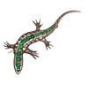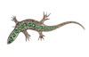 Brosche SALAMANDER, ART-DECO 1930/40er Jahre, SILBER 830/000, über den Rücken grüner Strass, seitlich farbloser Strass,in den Augen 2 kl. rote Steine, L = ca. 73,5 mm