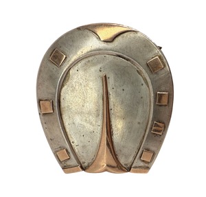 Unusual horseshoe-shaped box, SILVER with red gold soldering, in the flap: DEPOSÉ, delicately embossed on both sides, approx. 44.5 x 49.0 x 13.0 mm