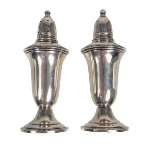 1 Paar Salz- & Pfeffersteuer, Amerika Mitte 20Jhd., SILBER 925/000, STERLING CEMENT FILLED, H = 12,3 cm, kl. Druckstellen, total 280,4 g