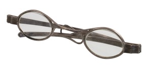 Spectacles around 1800/20, SILVER, signed AD in a lozenge, oval lenses, temples can be folded in via swivel joint, spectacles sit over the tension of the temples, front: B = approx. 127.0 mm
