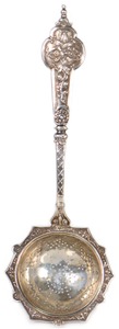 Antikes Teesieb, SILBER 800/000, signiert, Sieb mit einer 6-eckigen Grundform, L = 18,5 cm, total 48,0 g