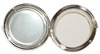 Puderdose mit Spiegel, WIENER WERKSTÄTTE der 1930er Jahre, SILBER 835/000, sig., WW 835, Deckel ausgelegt mit Bernstein BUTTERSCOTCH, Rückseite fein ornamentiert, D = 81,5 mm, total 110,5 g, ausgefallenes Schminkutensil !