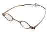 Brille um 1800/20, SILBER, signiert AD in einer Raute, ovale Gläser, Bügel über Drehgelenk einklappbar, Brille sitzt über die Spannung der Bügel, vorne: B = ca. 127,0 mm