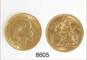 Goldmünze,ein engl.Pfund,916/000,von 1903,Rev.Heiliger Georg zu Pferde im Kampf mit Drachen