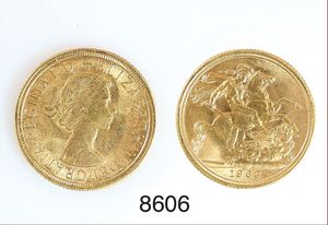 Goldmünze,ein engl.Pfund,916/000,von 1963,Rev.Heiliger Georg zu Pferde im Kampf mit Drachen