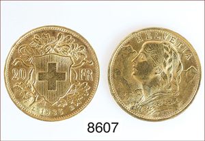 Goldmünze, 20 Schweizer Franken,"VRENELI",1935,geringfügige Faßspuren