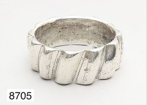 Schwerer geschlossener Armreif (alt), Süd-MAROKKO, Silber, weiche verzierte Wellen umlaufend, D = 61,0 mm (Innen), ca. 252,0 g