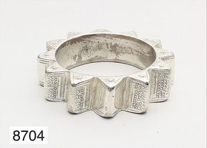 Armspange (alt), TUNESIEN, Silber (mit Widderkopf gepunzt), Fläche mit gepunzten Ornamenten verziert, ca. 69,0 x 66,5 cm (außen), ca. 125,0 g