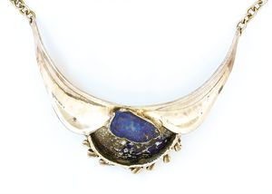 Collier, Metall versilbert, im Mittelteil Lapis und Emaille eingearbeitet, ca. 42 cm