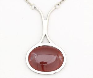 Anhänger an Kette, BEUT LARSEN, dän. Designer, Zinn, Glasstein, L. ca. 60,0 cm