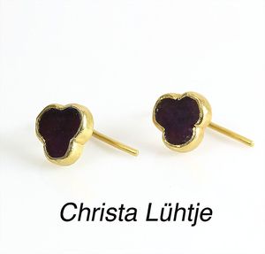 Ohrhänger, CHRISTA LÜHTJE, München, GG 900/000, Rubin-Platte in Blütenform, H = 14 mm