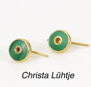 Ohrhänger, CHRISTA LÜHTJE, München, GG 900/000, Malachit Kranz, H = 15,5 mm