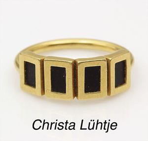 Ring, CHRISTA LÜHTJE, München, GG 900/000, 4 rechteckige Onyxscheiben, RW ca. 53,5