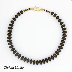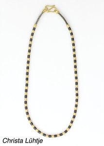 Kette, CHRISTA LÜHTJE, München, Feingold-Plättchen, GG 900/000 (Schließe), Onyx-Linsen im Verlauf, Innenkette GG 585/000 Fuchsschwanz, L = 39,0 cm