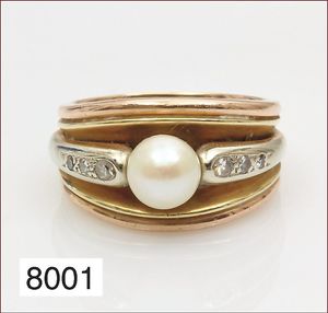 Perlring, ROSE/WG, 585/000, Akojaperle 6,5mm, 6 Diamanten ca. 0,10 ct, weiß, RW 56, total 9,4 g