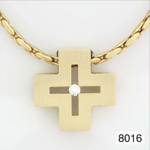 Kette, GG 585/000, mit Karabiner ca. 45,5 cm; Anhänger-Kreuz, GG 585/000, Brillant ca. 0,04 ct, weiß, total 7,8 g