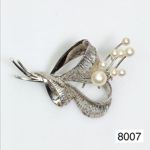 Brosche, WG 585/000, 6 Akoja-Perlen mit schönem Lüster, Breite ca. 4,9 cm, total ca. 7,7 g