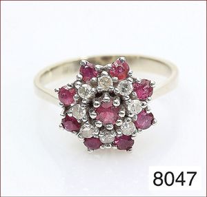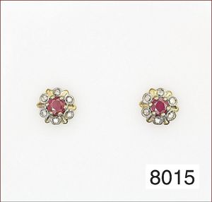 Ohrstecker, GG 333/000, 2 Rubine, 12 Diamanten, weiß