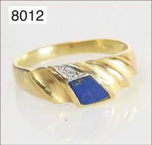 Ring, WG 585/000, Lapis-Platte, 2 Brillanten ca. 0,10 ct weiß, RW ca. 50