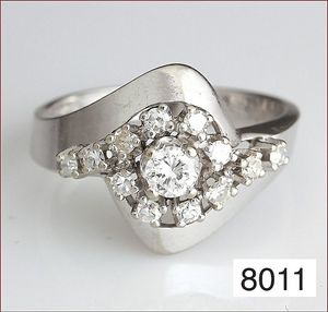 Ring, WG 585/000, 1 Brillant ca. 0,20 ct, weiß-vsi, 12 Diamanten ca 0,25 ct, weiß, ca. RW 55
