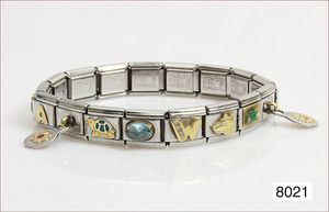 Armband original NOMINATION, Stahl & 18k Gold, 17 Glieder (3 mit Hänger), div. Edelsteine & Emailleeinlage, B = 9,0 mm
