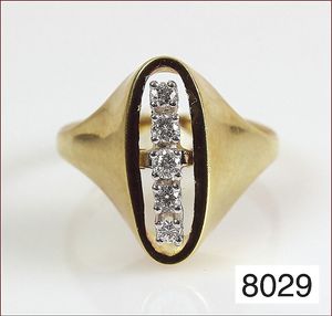Ring, GG 585/000, 5 Brillanten ca. 0,18 ct, weiß-si, RW ca. 50