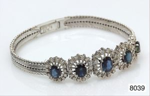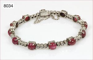 Armband, Silber, 12 Rubincab. ca. 8,5 ct, 36 Diamanten, Kastenschloß, L = 17,5 cm