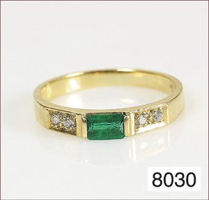 Ring, GG 750/000, 1 Smaragd antiker Schliff, 4 Brillanten ca. 0,04 ct, tw/w-si, RW ca. 50,5
