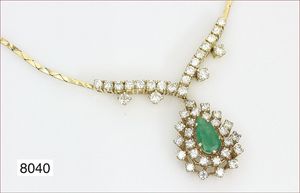 Collier, GG 585/000, mit Karabiner, 47 cm, Anhänger GG 750/000, Brillant 0,25 ct w-piquet, total 14,8 g