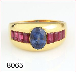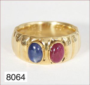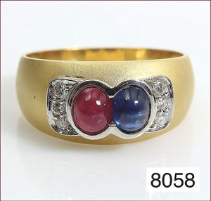 Ring, GG 750/000,1 Saphircab. 1 Rubincab., je ca 0,8 ct, RW ca. 54, ca. 9,1 g