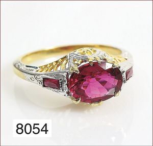 Ring, GG 916/000,1 Saphir ca. 1,80 ct, 8 Rubinbaquettes ca. 1,56 ct, RW ca. 62, ca. 9,2 g