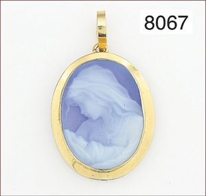 Anhänger, GG 750/000, moderne ital. Achatgravur " Maria mit Kind", H = 32 mm