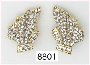 Goldfarbene Ohrclips von Grosse (Henkel & Grosse Pforzheim) mit klarem Pave-Strass, fächerförmig, H = 33,5 mm