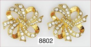 Große goldfarbene Ohrclips, signiert KJL for AVON (Kenneth Jay Lane, USA), Schleifen mit klaren Strasssteinen, D = 39 mm